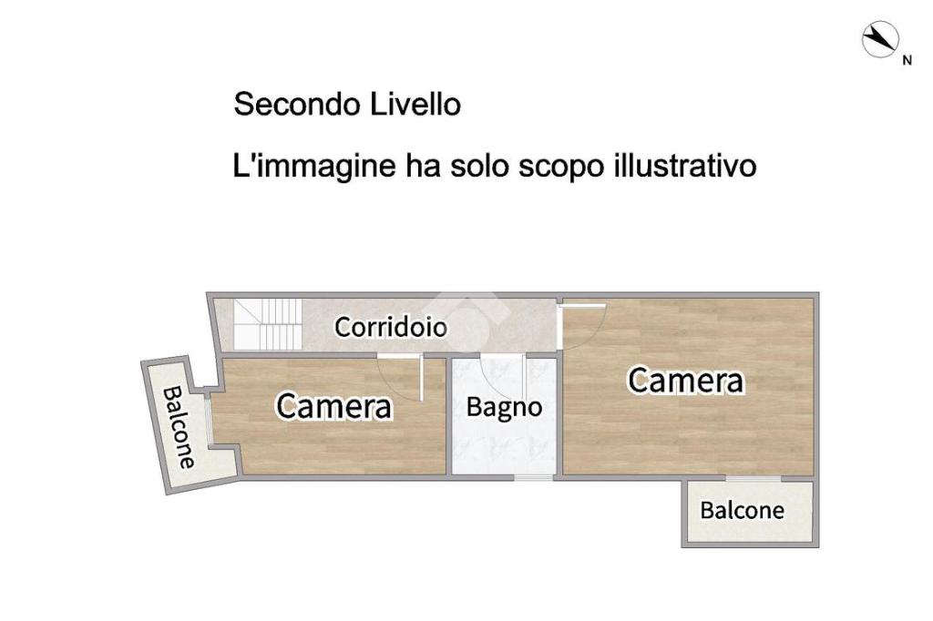 Ultimo livello: si sviluppa la zona notte con due camere da letto, una matrimoniale e una singola, oltre a un secondo bagno finestrato dotato di vasca.