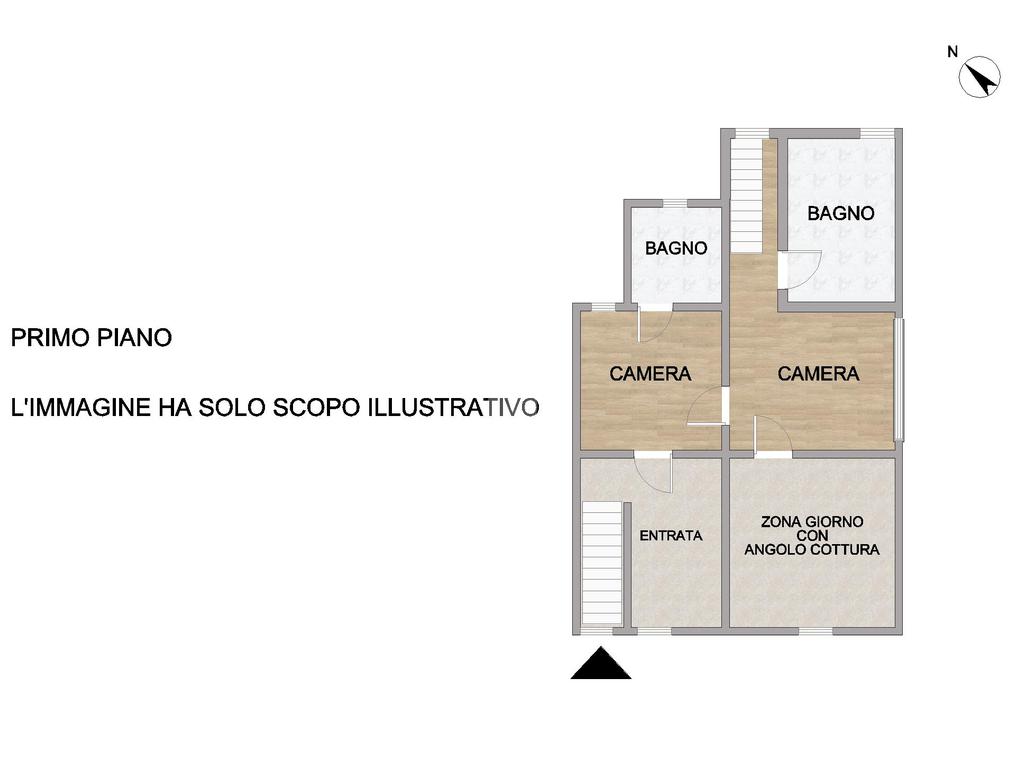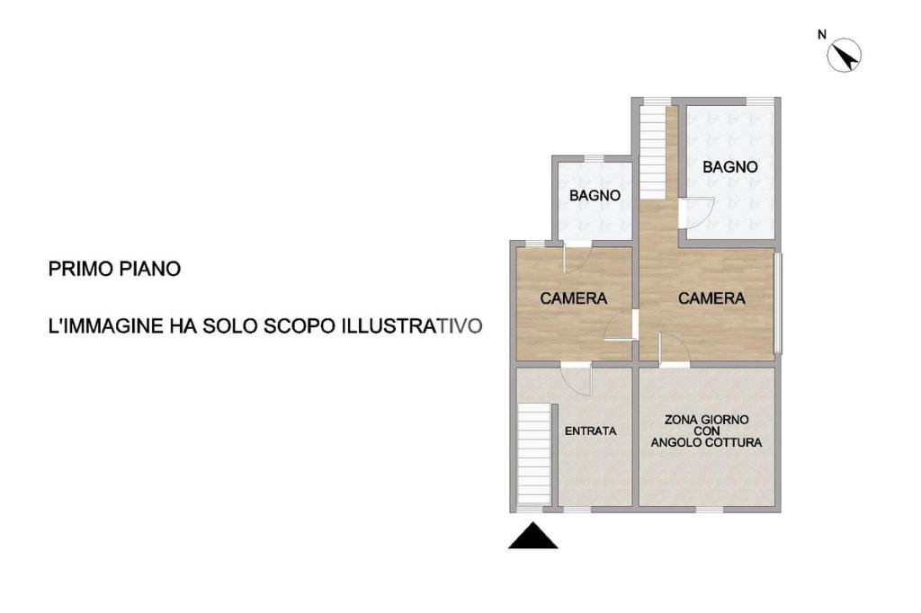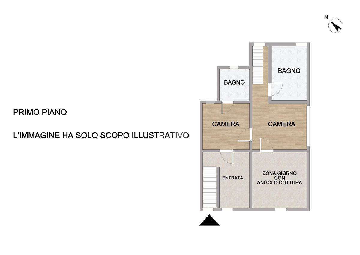 L’immobile si sviluppa tra piano terra e primo piano. Al piano terra troviamo l’ingresso che conduce alla zona giorno open space con angolo cottura da qui si accede alla zona notte composta da due camere da letto e due bagni di cui uno con vasca. Completa la proprietà un balcone con vista sul paese.
